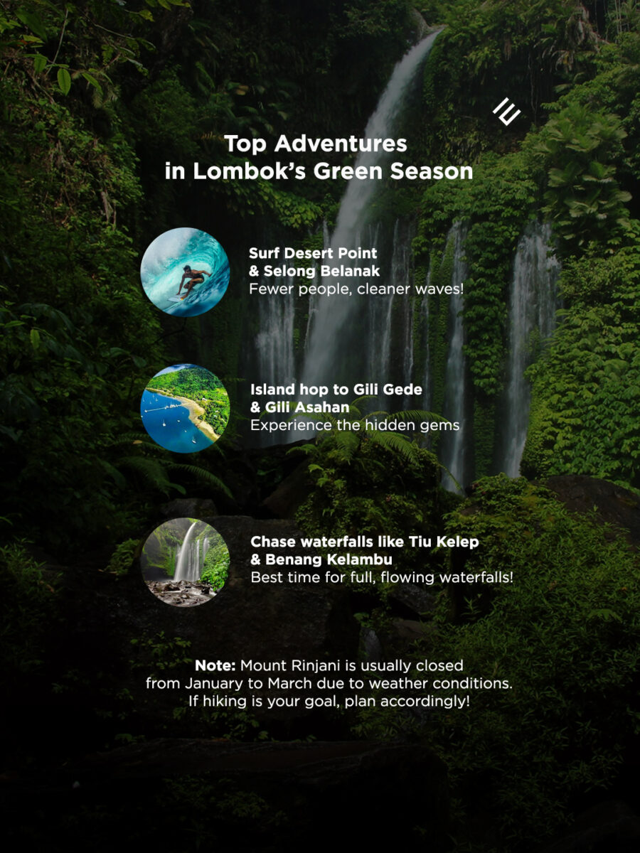 From November to March, Lombok enters what locals and seasoned travelers call the Green Season. While many hesitate at the word “rainy,” those who understand this time of year know that it transforms the island into something extraordinary.