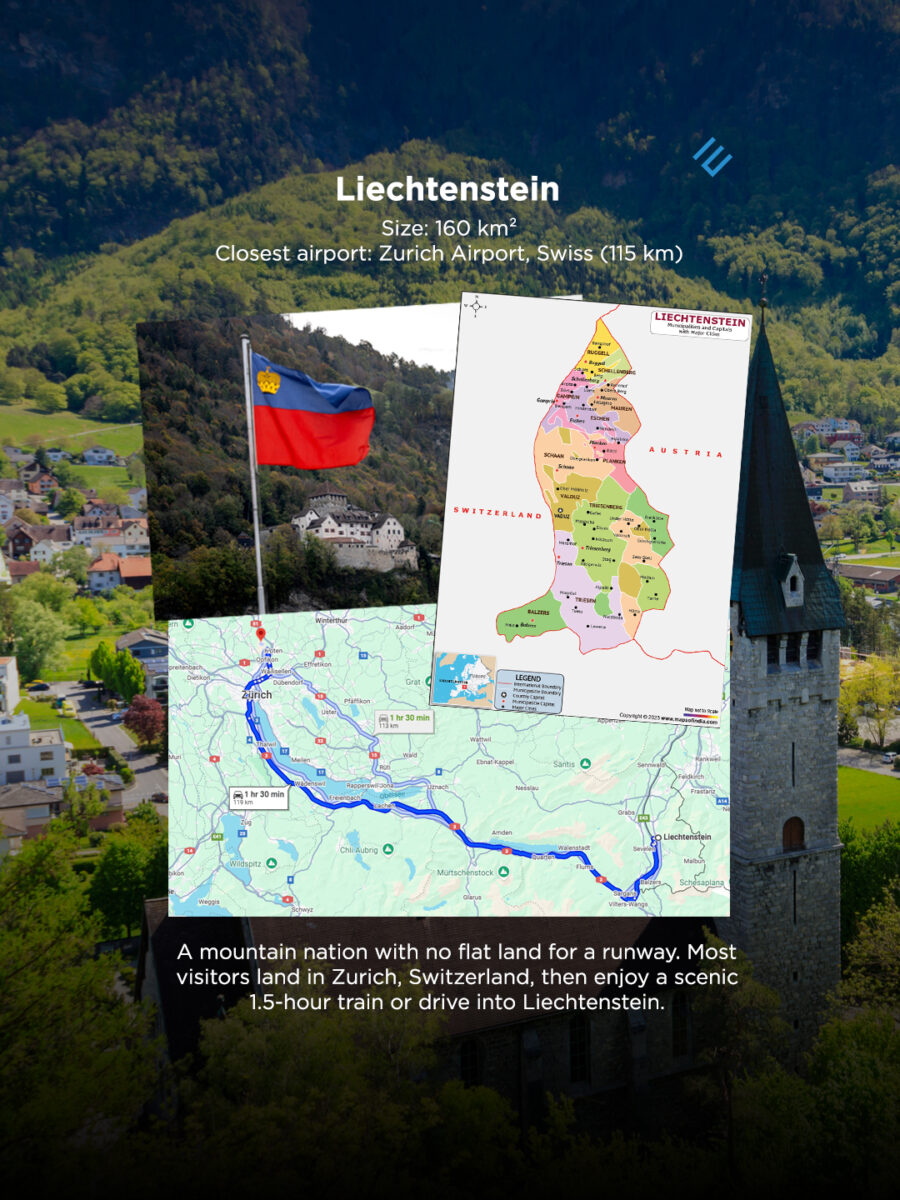 At 160 km², Liechtenstein is significantly larger than Vatican City or Monaco—but still has no airport.