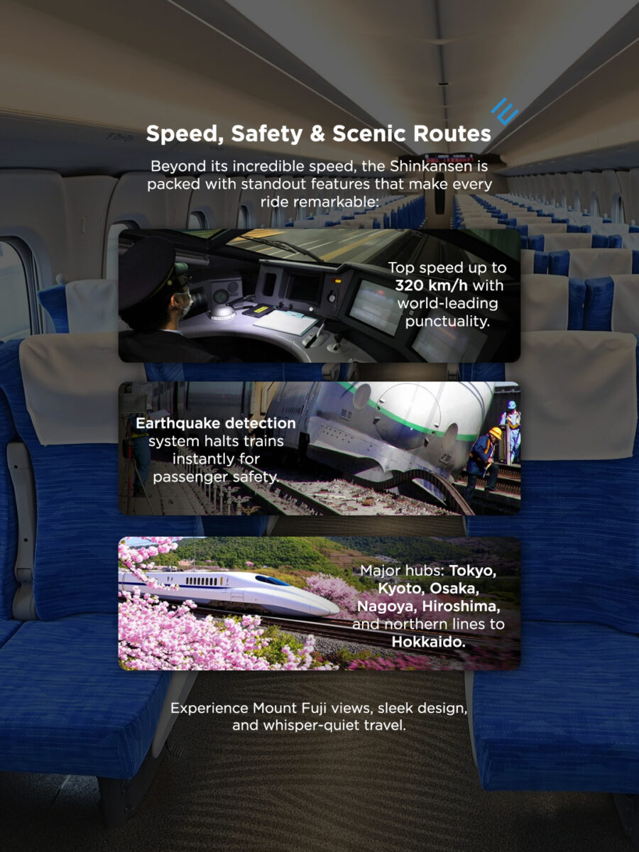If seismic activity is detected, trains halt instantly. Since its launch in 1964, the Shinkansen has maintained an exceptional safety record.