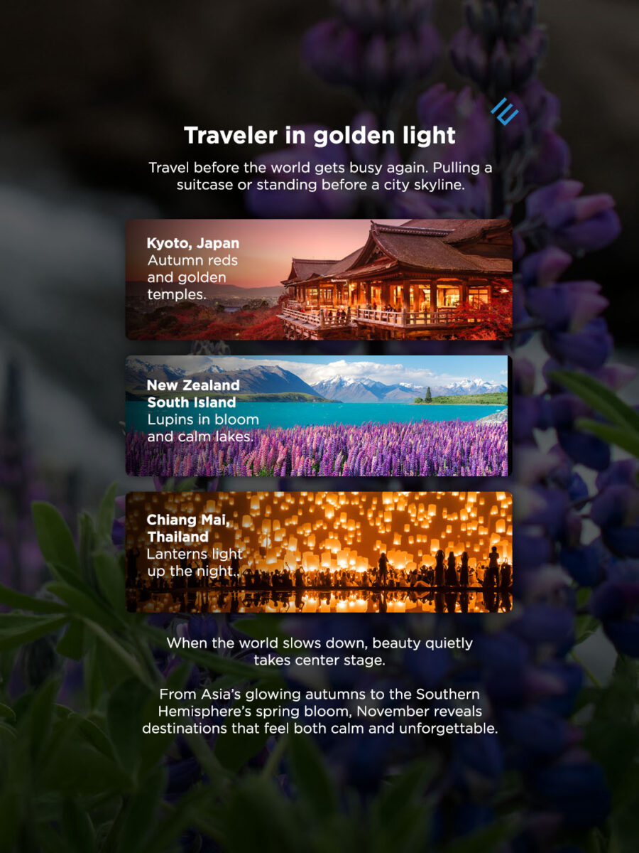 From Asia’s glowing autumns to the Southern Hemisphere’s spring bloom, November reveals destinations that feel both calm and unforgettable.